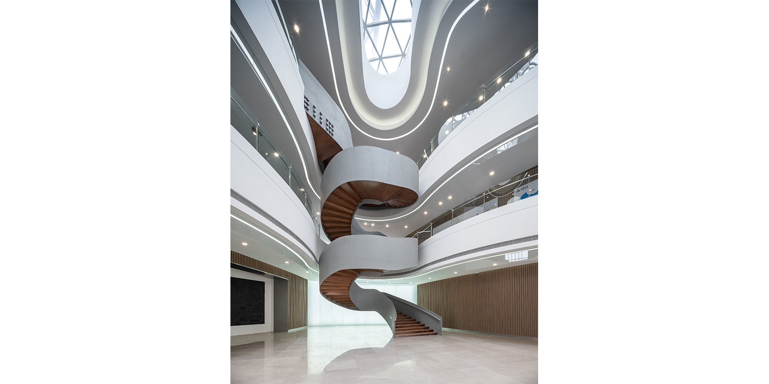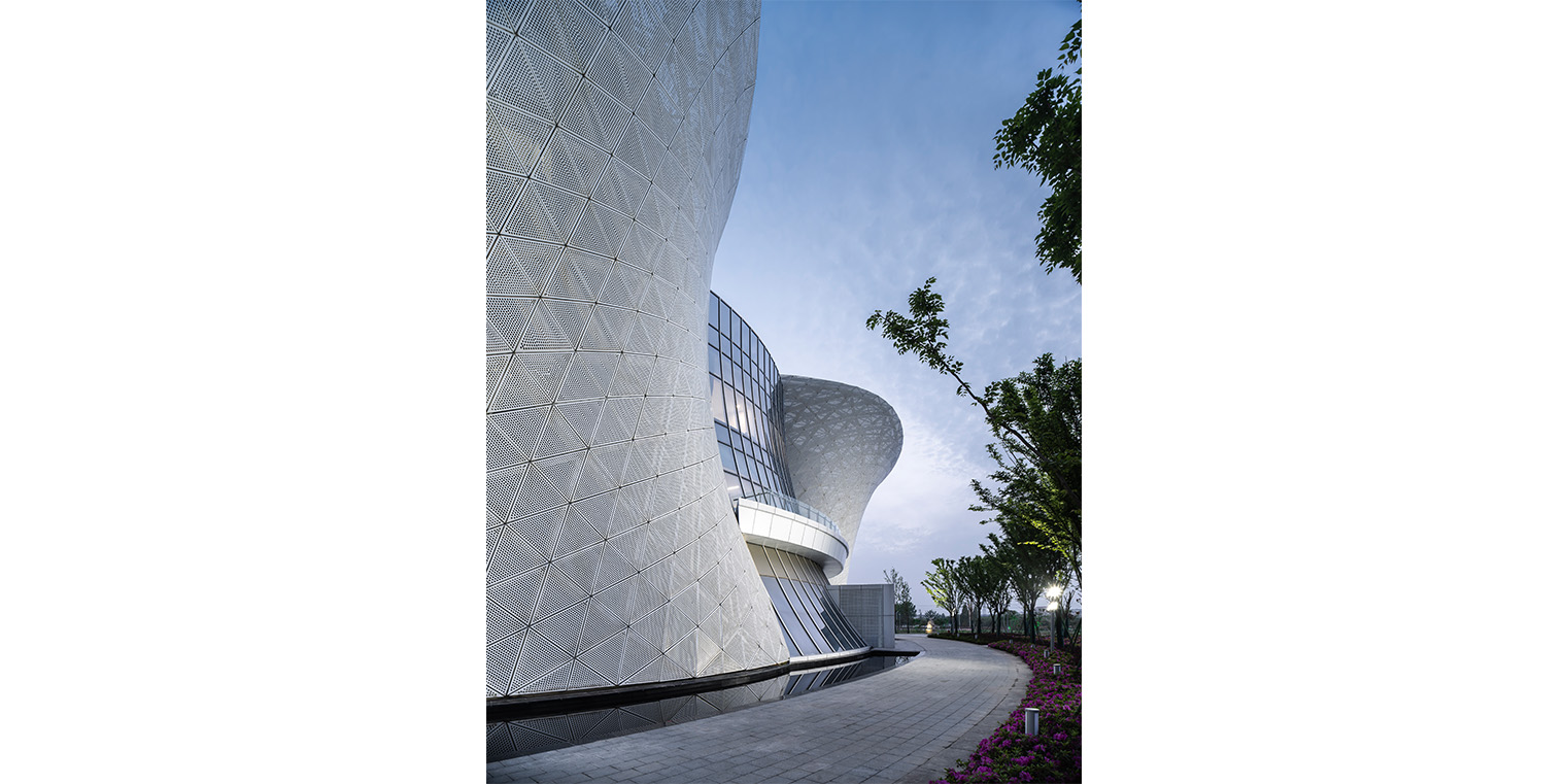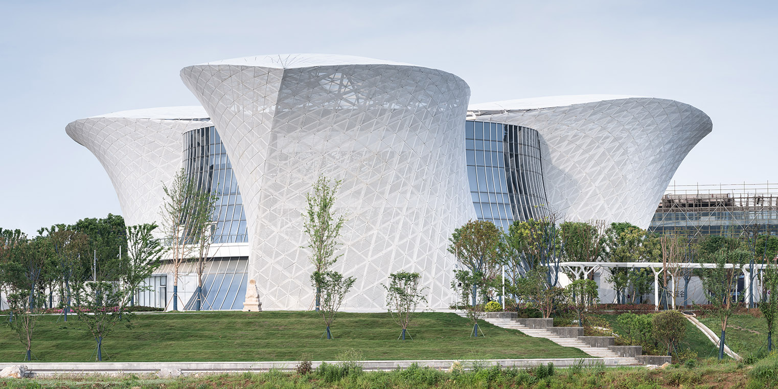 通過對啟迪企業(yè)特質(zhì)和文化的提煉,以及建筑形體的演繹來詮釋啟迪控股從“三螺旋模式”到“集群式創(chuàng)新”的理論實(shí)踐。設(shè)計(jì)將“TUS-ICON”的概念與三螺旋模式相結(jié)合,形成富有靈動的三片葉子,緊接著進(jìn)行找形及形態(tài)優(yōu)化的工作。 整體造型由三片立體旋轉(zhuǎn)上升的葉子及中間的裙體組合而成。葉片從中心點(diǎn)發(fā)散,通過變量(長度、弧度、角度)控制形成底部及頂部葉子平面,同時(shí)添加控制點(diǎn)重構(gòu)曲面,增加起伏關(guān)系,給予造型動態(tài)感。上下兩組葉子可通過與中心點(diǎn)的距離與角度調(diào)控位置,并連接形成立面,同時(shí)添加了曲面關(guān)鍵控制點(diǎn)柔化造型。中間裙體初始了圓臺體,后增加控制曲線,以提升造型的輕盈感,建筑形體造型具有創(chuàng)新性。