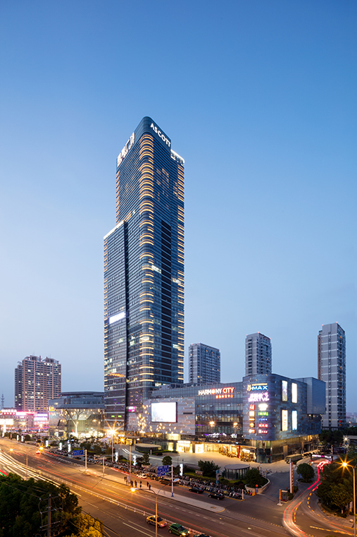 項(xiàng)目位于南通城市南北中軸線(xiàn)交匯的黃金地段,是新老城區(qū)的交匯 點(diǎn)。項(xiàng)目功能為公寓式酒店、辦公和商業(yè)。設(shè)計(jì)構(gòu)思來(lái)源于“鉆石永 恒之美”,結(jié)合鉆石切割的設(shè)計(jì)美學(xué)體現(xiàn)圓融廣場(chǎng)的地標(biāo)價(jià)值與高端 定位。通過(guò)對(duì)三角“鉆石”單元的組合變幻,形成建筑的設(shè)計(jì)亮點(diǎn)。廣 場(chǎng)大屋面由若干三角“鉆石”單元拼合而成,漸變的色彩猶如鉆石各個(gè) 角度折射的光影;流動(dòng)的形體又柔化了“鉆石”自身的堅(jiān)硬感。它們或 透明或鏤空,飄逸靈動(dòng)、輕舞飛揚(yáng)。夜幕降臨,一片片“鉆石”宛若繁 星點(diǎn)點(diǎn),高雅而時(shí)尚。“鉆石”屋面延伸至建筑各個(gè)入口,既可作為遮 風(fēng)避雨的設(shè)施,又能提供大面積的城市公共空間。