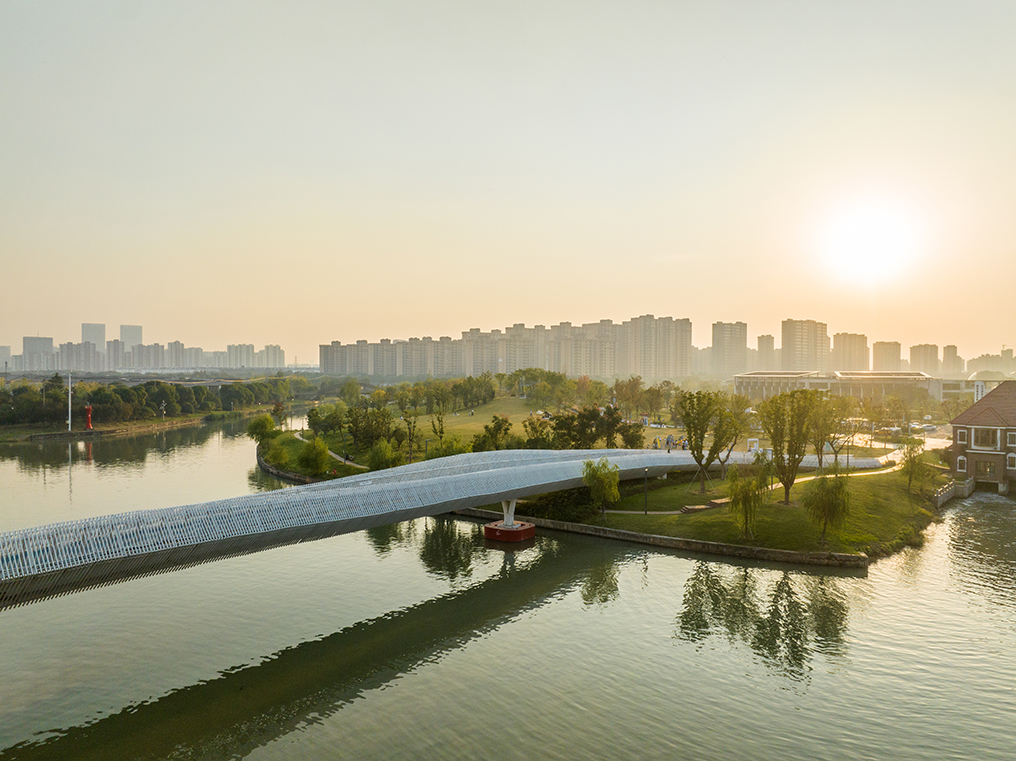 活力環(huán)位于江蘇省蘇州市相城區(qū),一個以陽澄湖聞名于世的水澤之鄉(xiāng)。它全長7公里,設(shè)計面積約21公頃,北至袁富莊路,南沿華元路,西臨廣濟(jì)北路,東至宣公路,在縱橫水網(wǎng)中構(gòu)建起一個連續(xù)的生態(tài)碧道,并有效串聯(lián)區(qū)域內(nèi)的熱點公共服務(wù)設(shè)施及眾多旅游景點。通過對區(qū)域內(nèi)開放空間的系統(tǒng)體檢,用城市針灸的理念打通慢行系統(tǒng)斷點,并將慢行廊道編織成環(huán)。設(shè)計在關(guān)鍵節(jié)點空間賦能,用場景營造的方式賦予線性空間多元化的城市生活功能,從而有效激活了都市活力和帶動周邊產(chǎn)業(yè)健康發(fā)展。