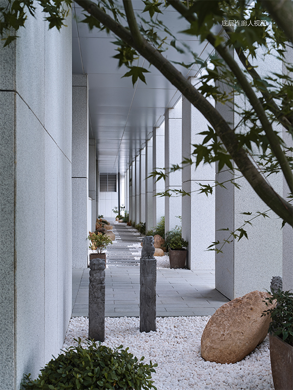 在鱗次櫛比的高層金融辦公區(qū)的建筑群落中,南京銀行與浙商銀行沿北側(cè)旺墩路均設(shè)置了連續(xù)有蓋走廊, 二者底層北側(cè)界面嚴(yán)格守齊, 確保沿主干道城市界面的完整性。為保證廣電大廈U 字形視線通廊,南京銀行限高26m,周邊都是高層大樓,使南京銀行形成了天然的“城市盆景”效果。