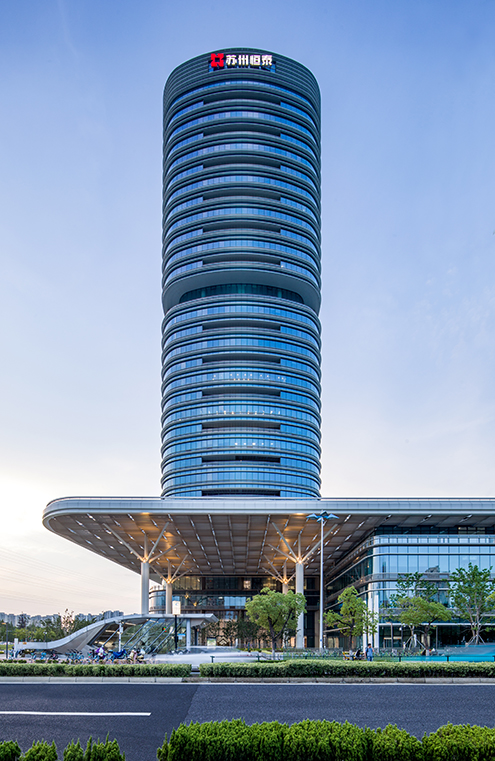 設(shè)計(jì)融合了傳統(tǒng)與現(xiàn)代,實(shí)現(xiàn)了“真正的可持續(xù)性”,并通過(guò)建筑形態(tài)及室內(nèi)外空間充分表達(dá)這些價(jià)值。將南宋平江圖中存在于蘇州這座古城近千年的城市脈絡(luò)和公共空間特征:河道、園林和公共空間網(wǎng)絡(luò),帶入到這座未來(lái)的地標(biāo)建筑中。