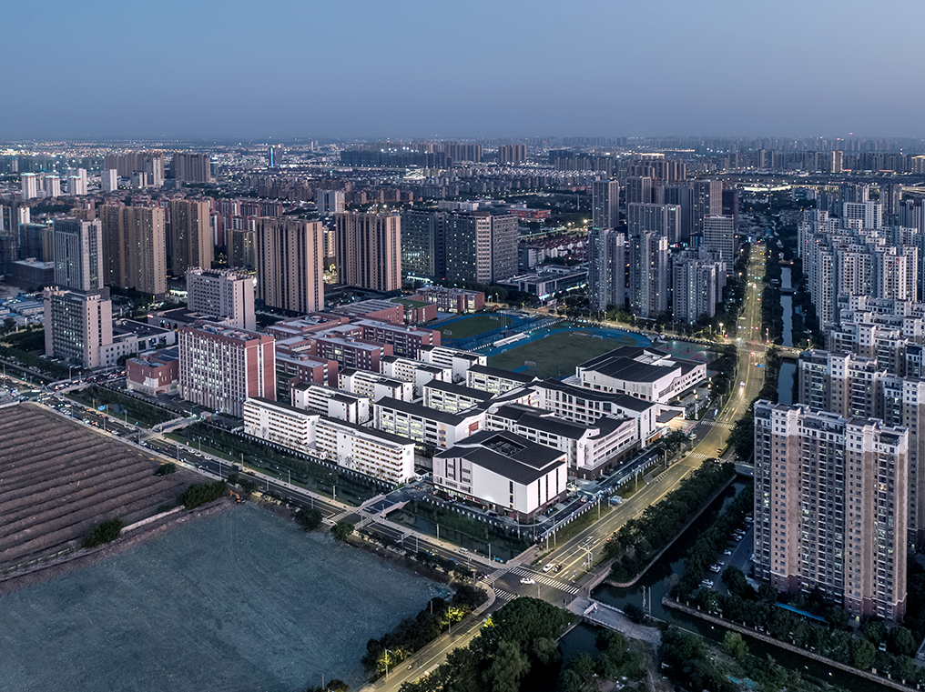 項(xiàng)目位于蘇州市吳中區(qū),建筑高度控制為檐口高度不大于24m。學(xué)校依據(jù)江蘇省普通高中四星級要求,打造吳中核心教育資源。本次設(shè)計(jì)以蘇州傳統(tǒng)江南水鄉(xiāng)底蘊(yùn)為主體,吳冠中筆下的江南卷軸為依托,通過“院”“苑”“園”的核心設(shè)計(jì)理念,完整、生動(dòng)的演繹了蘇苑高級中學(xué)新校區(qū)的生成過程。設(shè)計(jì)提煉蘇州園林布局手法,將建筑功能單元散落在基地中,疏密有致,城市界面形影交錯(cuò),呼應(yīng)蘇式傳統(tǒng)園林的江南韻味。