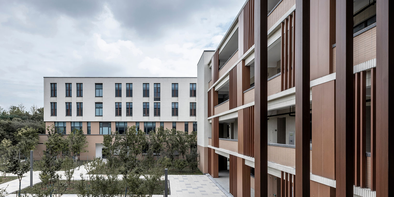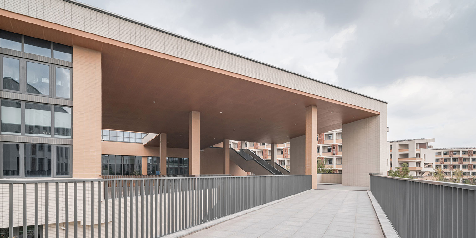 “U”型的總圖布局注定了學(xué)校環(huán)思古山而行的單行長流線,但為了迎合高中生緊湊的日常作息,校園教學(xué)區(qū)建筑的整體節(jié)奏也應(yīng)該是緊湊的,為了實現(xiàn)空間的最高效利用,教學(xué)區(qū)建筑呈聚落式環(huán)繞山水展開,并采用“串葫蘆”的方式,利用游廊將所有的建筑串起來。 整個校園環(huán)起于學(xué)生教師公寓,途經(jīng)食堂、教學(xué)區(qū)、實驗樓,終于國際部,游廊使這些相互獨立的功能互相聯(lián)系形成一個有機整體,它是學(xué)生生活學(xué)習(xí)路上的交通捷徑,有效縮短了學(xué)生們不必要的路上時間。