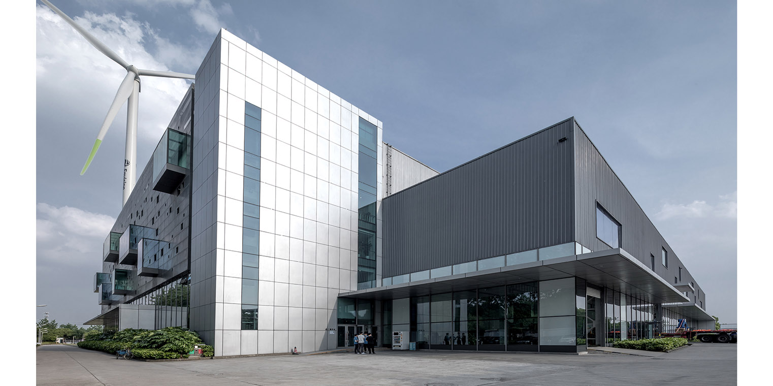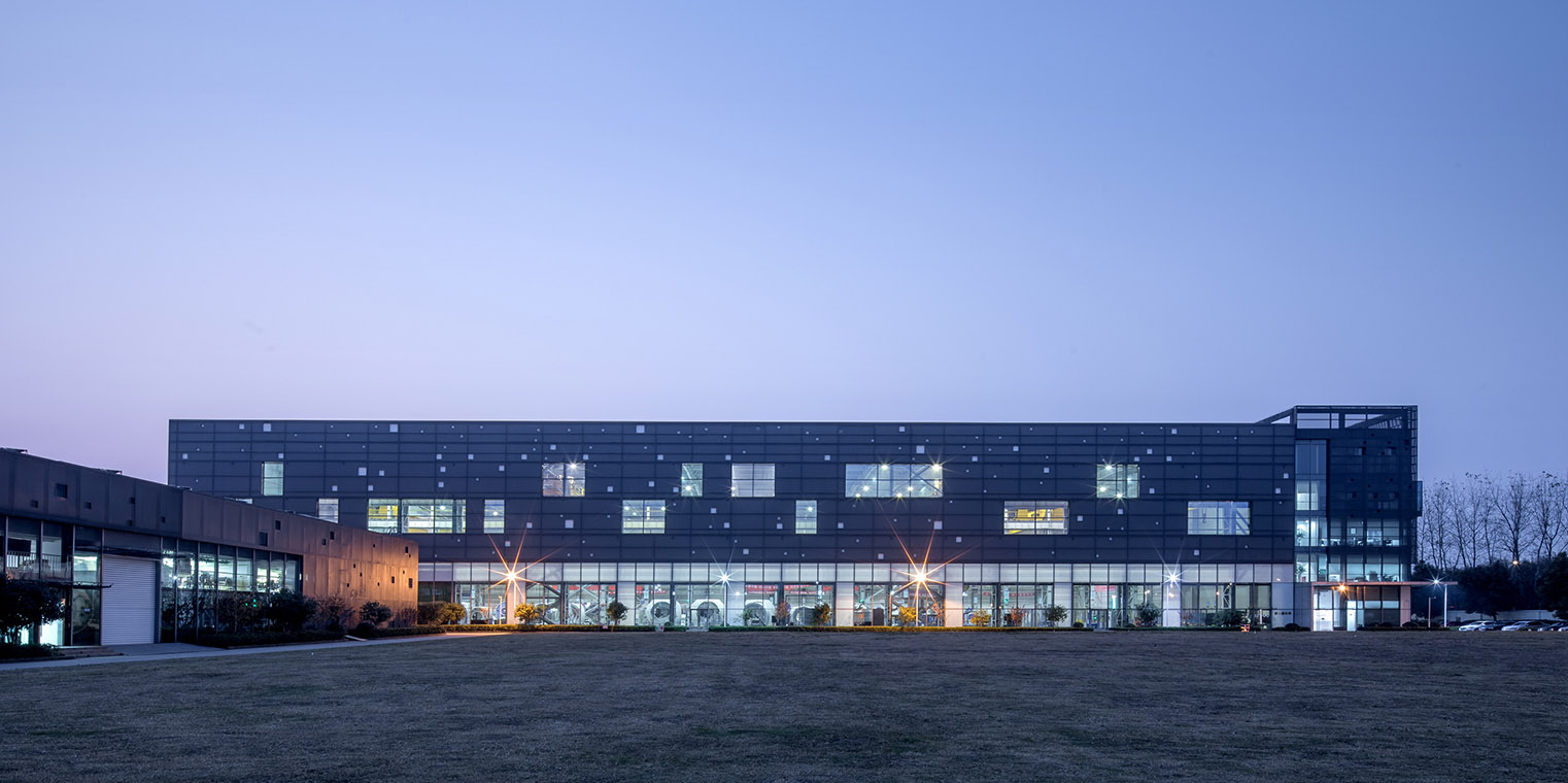 作為產(chǎn)業(yè)建筑,項(xiàng)目方案設(shè)計(jì)階段以生產(chǎn)所需的工藝流線、空間尺度為主導(dǎo),在滿足業(yè)主所需的生產(chǎn)工藝前提下,梳理出其他附屬配套功能。在用地條件緊張的情況下嘗試不同計(jì)容方式的布局組合,以滿足不同生產(chǎn)流線所需的不同建筑面積尺寸、建筑空間高度。 其中餐廳綜合樓和廠區(qū)貼臨設(shè)計(jì),由于生產(chǎn)的特殊性,廠房單層層高達(dá)到21.4米,貼臨的綜合樓則可以設(shè)計(jì)為四層建筑,在滿足配套要求的前提下,在四層增加員工休閑娛樂(lè)區(qū)域,充分體現(xiàn)遠(yuǎn)景“激情、平等”的企業(yè)文化,塑造人性化辦公模式和綠色活力空間形態(tài)。