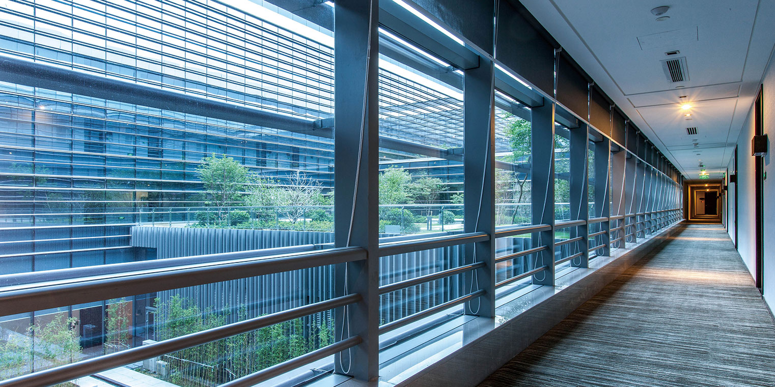 地塊為東西向之矩形,酒店本身設(shè)計(jì)為雙口字型疊落交錯(cuò),如同形成一無(wú)限(∞)符號(hào)。本項(xiàng)目建筑造型為簡(jiǎn)潔現(xiàn)代的設(shè)計(jì)風(fēng)格,材料的使用將以玻璃,石材與金屬為主,建筑的材料將與景觀使用的材料統(tǒng)一。兩圍繞中庭的立面與主建筑的外觀立面為對(duì)比,以白色半透明與透明開(kāi)窗為主,主要目的在提供沿中庭的房間走道更好的采光并強(qiáng)化中庭開(kāi)敞明亮通透的感覺(jué)。本項(xiàng)目落實(shí)以人為本、自然采光、自然通風(fēng)等原則,貫徹適用、經(jīng)濟(jì)、美觀的建筑方針,降低建筑能耗,其合理選擇和集成了適用的技術(shù)應(yīng)用于酒店建筑。 項(xiàng)目亮點(diǎn): 1、多層次屋面綠化:項(xiàng)目在二~ 四層及屋頂層設(shè)置多處綠化平臺(tái),提供更多休閑共享空間。 2、河道水與雨水資源共用:項(xiàng)目緊鄰河道,水資源豐富,在取得用水許可的情況下,將項(xiàng)目收集到的雨水排入河道中,再通過(guò)河水回用系統(tǒng)進(jìn)行處理后進(jìn)行綠化灌溉及水景補(bǔ)水。
