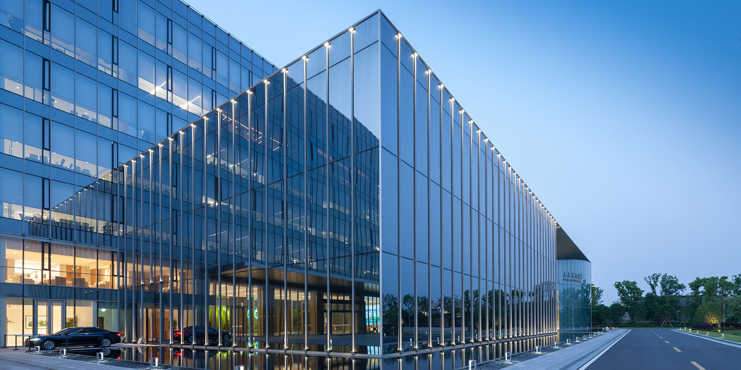 項(xiàng)目二期包括科研大樓(主樓)和未來(lái)能源館(裙房),作為全球新能源及硅材料研究的領(lǐng)軍項(xiàng)目建設(shè)秉著因地制宜、被動(dòng)主動(dòng)結(jié)合、建筑技術(shù)一體化設(shè)計(jì)等理念,制定綠色技術(shù)策略,實(shí)現(xiàn)節(jié)能舒適、綠色生態(tài)、現(xiàn)代實(shí)用的辦公研發(fā)大樓。 項(xiàng)目亮點(diǎn): 1、可再生能源一體化設(shè)計(jì):太陽(yáng)能系統(tǒng)布置于辦公樓屋面、光伏發(fā)電系統(tǒng)布置于屋頂、水面、入口展示、遮陽(yáng)車(chē)棚等處,地源熱泵系統(tǒng)換熱埋管位于景觀水底。 2、自然采光優(yōu)化:外立面主要為玻璃幕墻結(jié)構(gòu),自然采光效果良好,同時(shí)為了解決大采光進(jìn)深的問(wèn)題,分別在主樓和展廳樓設(shè)置了大面積的采光天窗。 3、新風(fēng)系統(tǒng)采用熱回收式新排風(fēng)機(jī)組,電梯采取變頻調(diào)速拖動(dòng)方式。 4、設(shè)置合理的智能化系統(tǒng):包括智能化集成系統(tǒng)、信息設(shè)施系統(tǒng)、信息化應(yīng)用系統(tǒng)、建筑設(shè)備管理系統(tǒng)和公共安全系統(tǒng)、機(jī)房工程及建筑環(huán)境等要素。